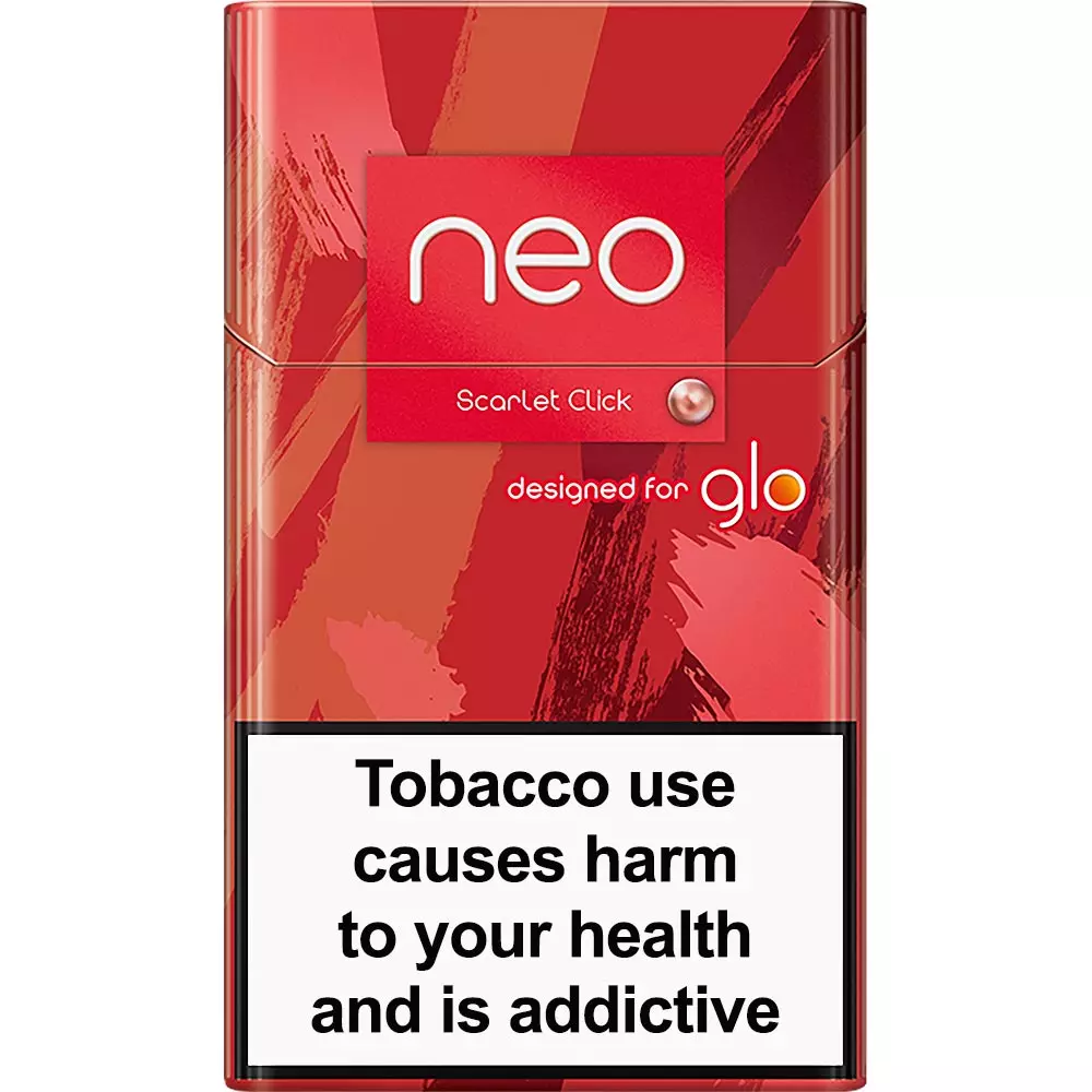 Neo Demi Scarlet Click is a mild tobacco flavor with creamy notes, infused with the juicy red berries at the click of a button. For use only with Glo Hyper line of devices.